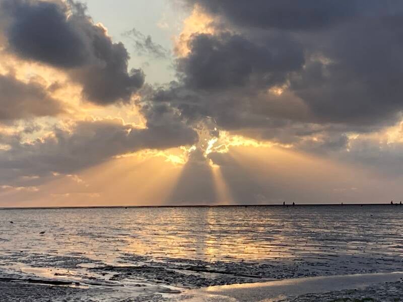 Heute begann der Tag Grau in Grau, gefolgt von Sturm und Regengüssen. Zum späten Nachmittag wurde es noch mal trocken. Wir haben die Zeit genutzt, um am Strand spazieren zu gehen. Dort haben wir den Blick auf die wilden Wellen, die Brandung, die steife Brise im Gesicht und am Ende sogar den Sonnenuntergang sehr genossen!