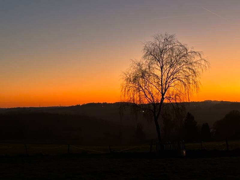 Ein klarer Himmel, eine wunderschöne Morgendämmerung! Ich habe den Morgen für einen Spaziergang von Rüggeberg bis zur Heilenbecker Talsperre genutzt.
