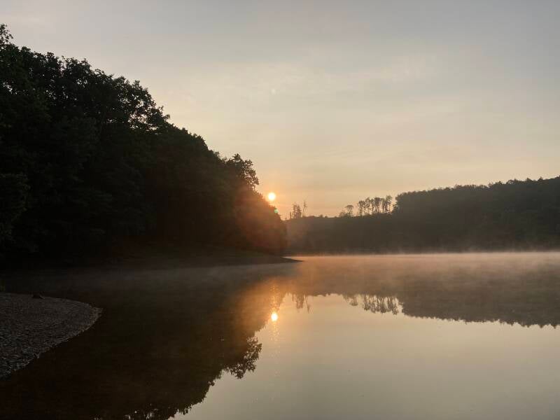 Es ist einfach wunderbar, mit dem Erwachen des Tages durch den Wald zu radeln oder im See zu schwimmen - durch den Nebel mit Blick in den blauen Himmel, Vogelgezwitscher! Herrlich!