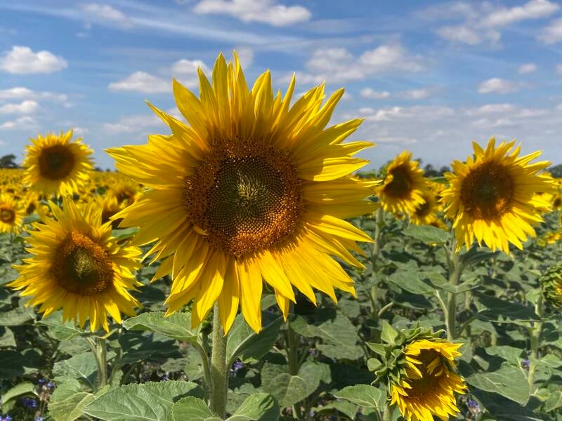 Mir war zum Fliegen zumute, als ich mit Vogelschwärmen über den Deich radelte und ein Strahlen erreichte mich beim Anblick eines weiten Sonnenblumenfeldes!